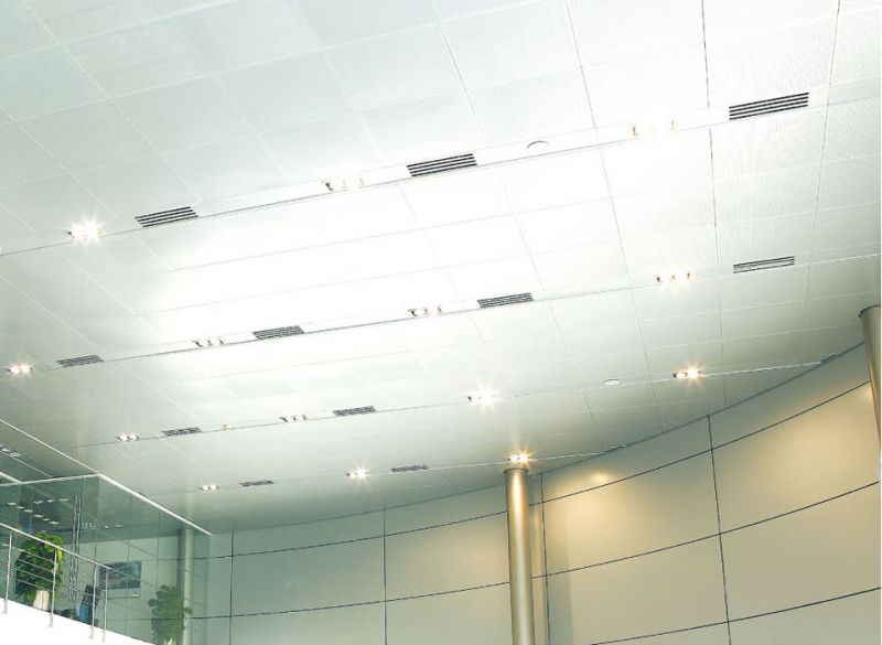 方形天花板以其款式多,整体平面效果好,线条简洁美观,安装方便的特点。广泛使用于写字楼、商场、火车站、机场、大型会所等场合。